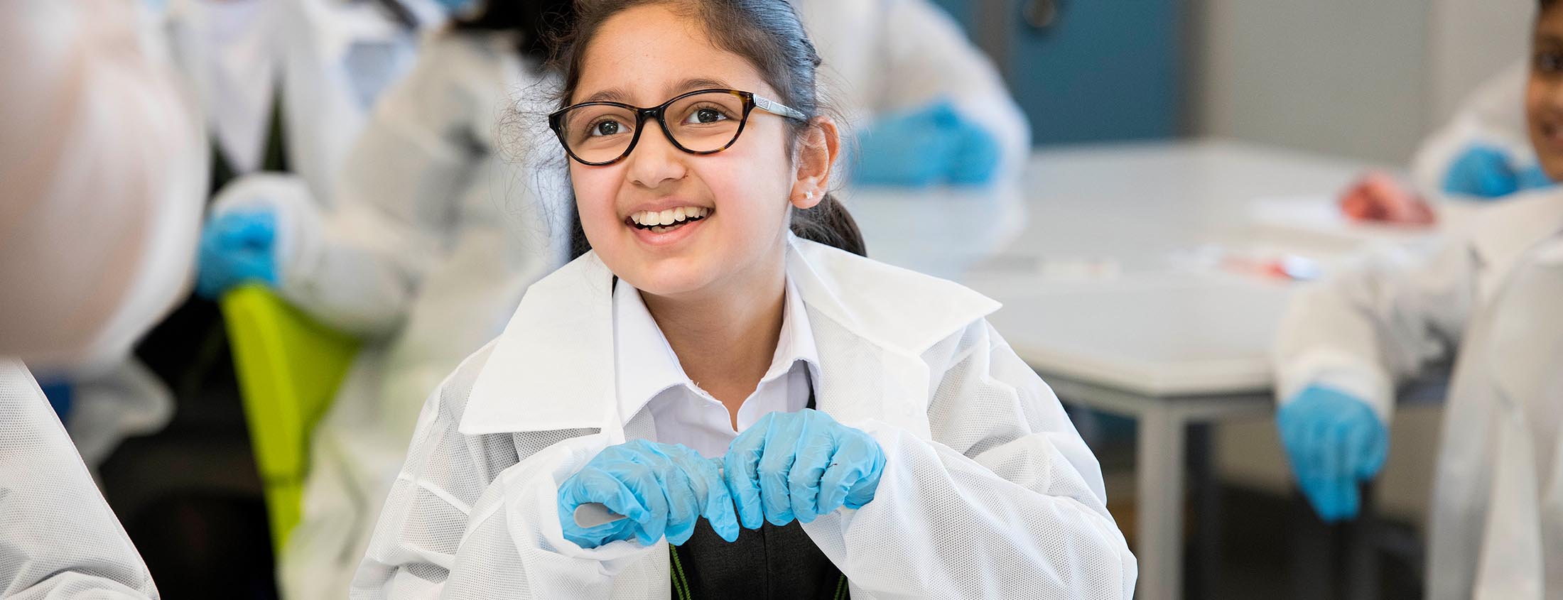 Girl in lab coat in class