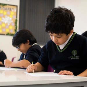 Pupils writing in class